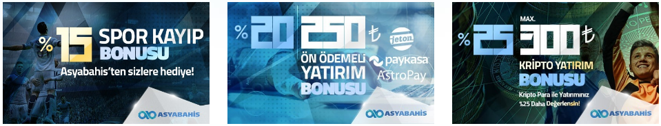 Asyabahis bonus seçenekleri sayesinde de hızla gelişip üye sayısını artırmıştır. Sitede yer alan bonuslar zamanla güncellenip bonus olarak verilen rakamlar artırılmaktadır. Bu sebepten ötürü bahis severlerin Asyabahis bonusları takip etmeleri gerekmektedir. Asyabahis bonusları; Casino Reload Bonusu, Ön Ödemeli Yatırım Bonusu, Kripto Yatırım Bonusu, Spor Kayıp Bonusu, Havale Yatırım Bonusu, Günlük Casino ve Canlı Casino Kayıp Bonusu, Kombine Bonusu, Casino Kayıplarına Sanal Sporda 30 TL Freebet, QR / Cepbank Bonusu, Gece Kayıp Bonusu, Casino Hoş Geldin Bonusu, Hoş Geldin Bonusu olarak sıralanmaktadır. Bu bonusları kullanabilmek Asyabahis kullanıcılarının bonus kurallarına uymaları ve bonusları siteden talep etmeleri sonrasında gerçekleşmektedir.