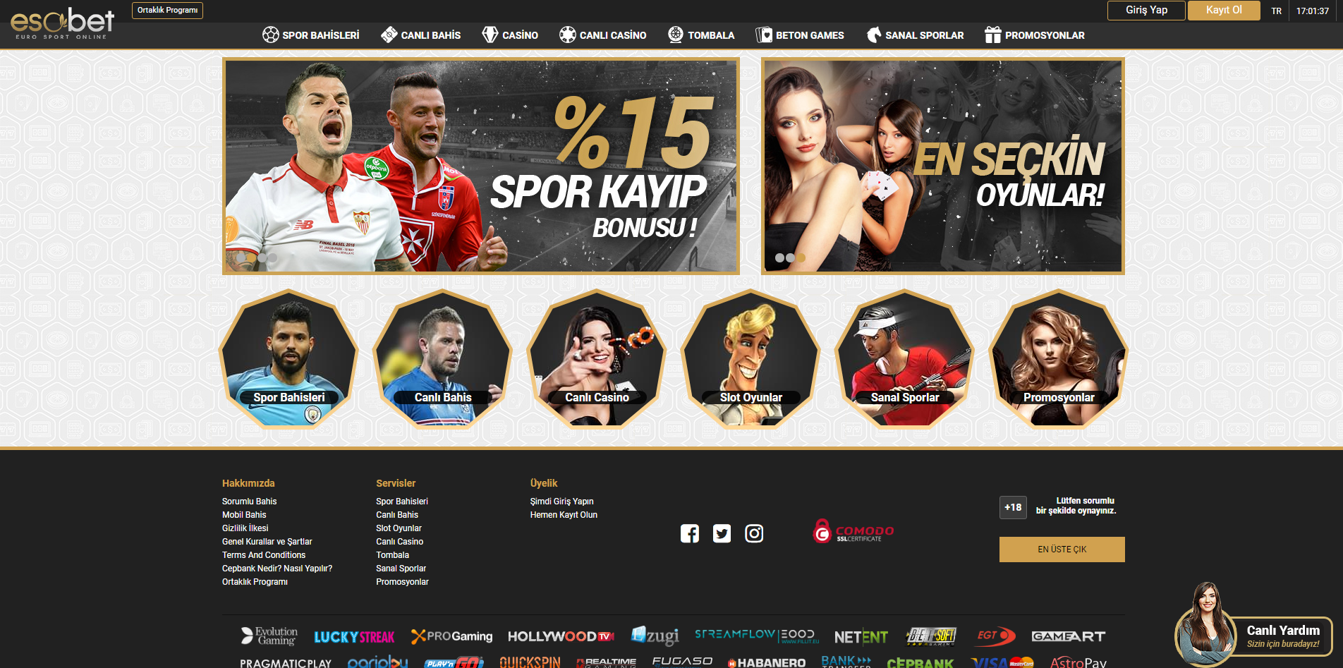 Casino oyunları ve canlı bahis kapsamında oldukça kaliteli hizmetleri ile göz önüne çıkan Esobet bahis sitesi, kaçak bahis siteleri kapsamında hizmet veren bahis sitelerinin engellenme durumundan geçtiğimiz günlerde nasibini almıştır. Ancak Esobet bahis sitesi profesyonel yönetimi yeni içerikleri ile geliştirmiş olduğu yeni giriş adresi https://www.esobet.com‘u oluşturmuş ve kaldığı yerden hizmetlerine devam etmektedir. Esobet kullanıcıları ise eski kullanıcı adı ve şifreleri ile yeni giriş adresi üzerinden siteye giriş yapabilmektedir.