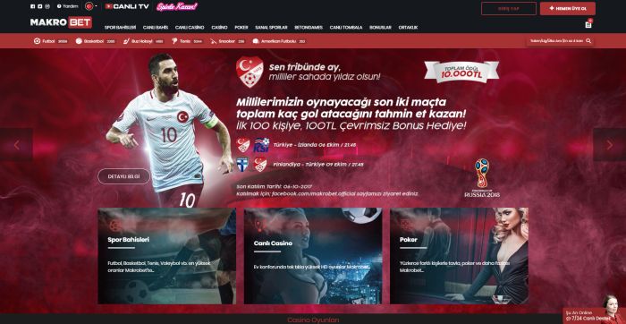 Makrobet bahis sitesi canlı online oyunlar ile kullanıcılarına hizmet vermekte olan, yüksek oranlar ile üyelerine sürekli kazanç sağlatan bir bahis sitesidir. Makrobet günden güne kendini geliştirerek popülaritesini hızla arttırmakta olan site bahis siteleri arasında ilk sıralarda yer almayı başarmıştır. MAkrobet bahis sitesi kullanıcılarına Türkçe olarak hizmet vermektedir.