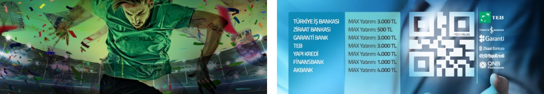 Pokerklas’ a para yatırmak da en az üyelik işlemleri kadar hızlı ve kolay bir biçimde gerçekleşmektedir. Pokerklas yetkilileri kullanıcılarının herhangi bir sorun yaşamamaları için herkese hitap eden ödeme yöntemlerini sistemlerine eklemişlerdir. Pokerklas para yatırma işlemleri; Akbank Cep Cüzdan, TL Nakit, Cep Bank, Kredi Kartı, EcoPayz, PayKasa, PayzWin, GpaySafe ve Neteller seçeneklerini içermektedir. Pokerklas para yatırma işlemleri için bahis severin bu yöntemlerden herhangi birini seçerek bir para yatırma formu doldurmaları gerekmektedir. Para yatırma formlarına ise kullanıcı hesaplarında bulunan ‘Para Yatır’ seçeneğinden ulaşmak mümkündür.