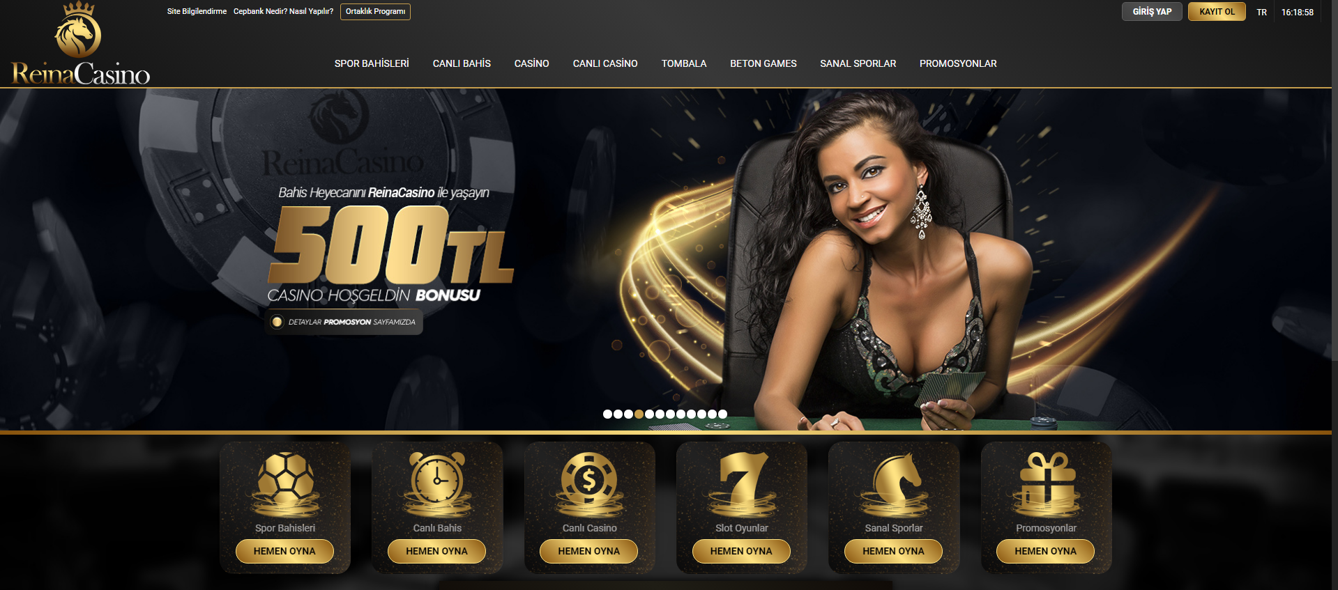 Reina Casino kaçak bahis sitesi, günümüzde aktif olarak hizmet veren güvenilir ve kaliteli bahis sitelerinden bir tanesidir. Bu sitede birçok farklı oyun ve bonus seçeneği bulunmaktadır. Üyelerin sık sık tercih ettiği Reina Casino sitesi, Curacao lisansı ile uzun zamandan beri hizmet vermektedir. Bu siteye üye olan bahis severlerin güven ve gizlilik konusunda bu zamana kadar büyük sıkıntılar yaşamadığını söylemek mümkündür. Bahis sitesi, üyelerine oldukça kaliteli bir hizmet sunmakta ve onları hiçbir konuda mağduriyete uğratmamaktadır. Bahis sitesinde yer alan oyun seçeneklerinden bazıları spor bahisleri, canlı casino, canlı bahis, slot oyunlar ve sanal sporlar olarak karşımıza çıkmaktadır. Siteye üye olmanız durumunda bu oyun seçeneklerinden istediğinizi seçebilir ve bahis yaparak kazanç elde etmeye başlayabilirsiniz. Ayrıca bahis sitesinin üyeleri için sunduğu avantajlı bonus seçeneklerinden de faydalanmanız mümkün olacaktır.
