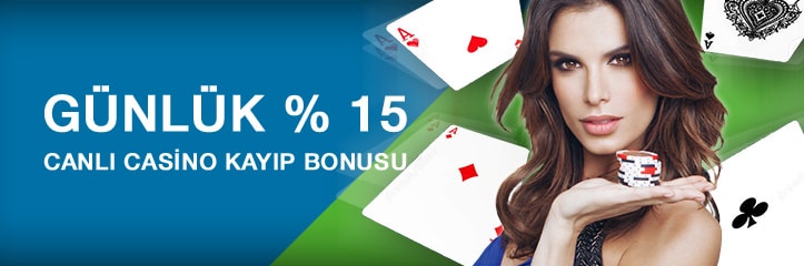Bir diğer bahis oynama ve kazanma arzunuzu canlı casino sayesinde gerçekleştirebilirsiniz. Türk bahis severlerin memnuniyetle oynadığı aynı zamanda sohbet etme imkânı sunulan canlı casino da Rulet ve Black Jack gibi oyunlar sunulmaktadır. Bahisçilerin en sevdiği ve en çok kazandıran oyunlarından olan rulet ve black jack oyunları sayesinde kazançlarınızı katlayabilme olanağı sağlamaktadır. Canlı casino oyunlarını istediğiniz limitte oynayabilmektesiniz.